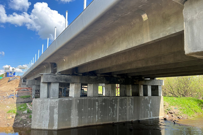 Бригады уже завершили демонтаж старого дорожного покрытия, установку гидроизоляционного слоя, укладку выравнивающего и защитного бетона. Также проведен ремонт балок пролетного строения, замена деформационных швов, укрепление конусов с применением монолитного бетона и устройство переходных плит и шкафных стенок. Установлены барьерные и перильные ограждения. Асфальтобетонное покрытие уложено в два слоя.