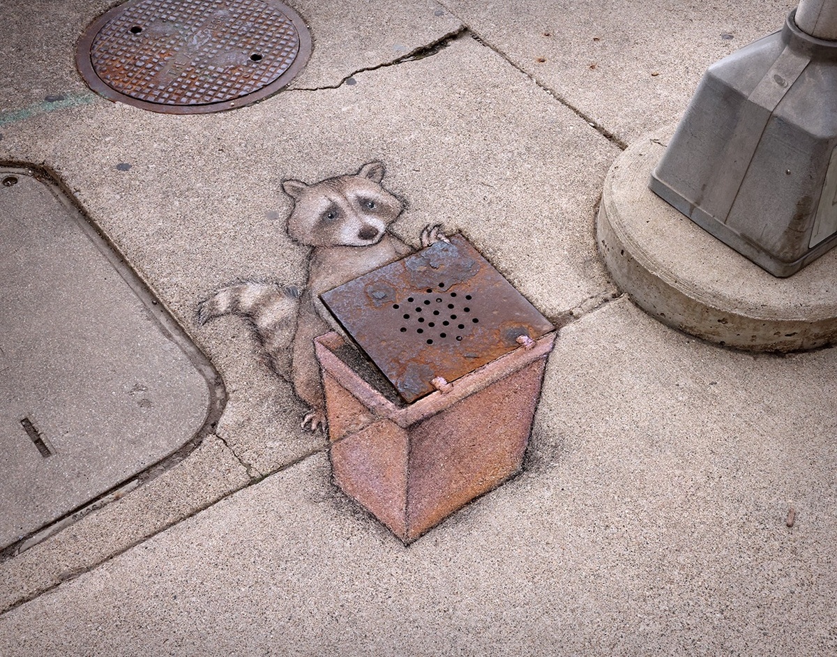 Все ребятишки обожают летом рисовать мелками на тротуарах. А во время праздников вроде Дня защиты детей муниципалитеты под эту забаву отводят городские площади, а потом устраивают конкурс на лучшую работу. Житель Мичигана Дэвид Зинн, несмотря на то, что уже давно вышел из мальчишеского возраста, так и не изменил привычке рисовать на асфальте. Он создаёт свои оригинальные произведения уличного искусства в Анн-Арборе и его окрестностях, а его фантазии и яркому, открытому взгляду на мир можно только по-хорошему позавидовать. «Большую часть своего позднего детства и ранней юности я провёл в страхе перед идеей заниматься искусством, — признаётся Дэвид Зинн. — Я любил рисовать — почти в ущерб всему остальному, но предпочитал делать это на салфетках, скатертях и старых тетрадях, которые всё равно потом отправлялись в мусорную корзину. Поставьте меня перед холстом с кистью в руке, и я застыну, как статуя, парализованный мыслями обо всём, о чём я мог бы пожалеть, если бы нарисовал. Дайте мне тр