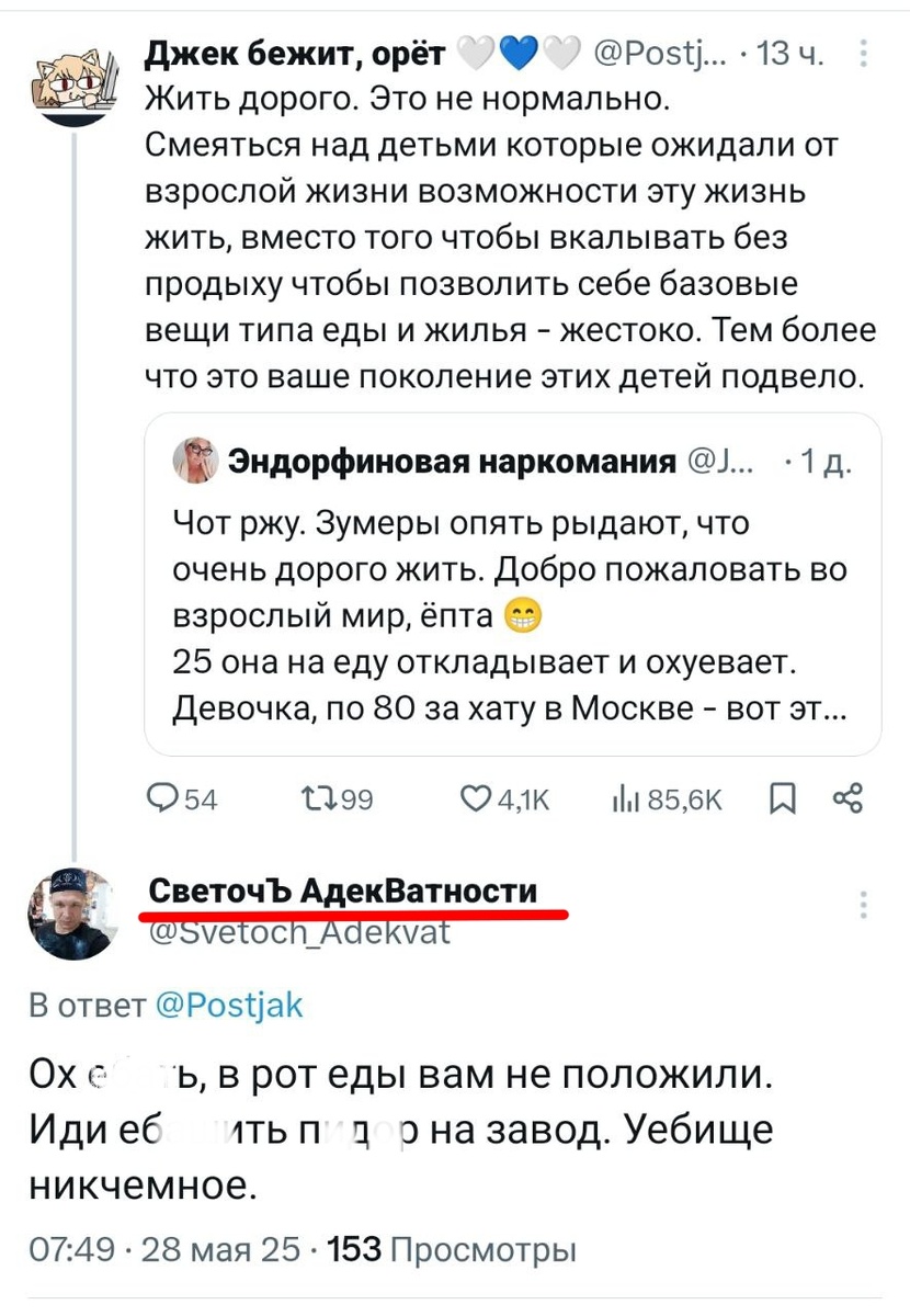 Ну так то нас тоже подвело то поколение, которое нас родило - ниче не дали, разве что образование и какие-то моральные ориентиры, подкрепляя иногда усвоение парой поджопников. Но папа мне рассказывал, что оказывается это древняя традиция - им было также выдано, разве что соотношение в пользу поджопников и соответственно меньше образования и меньше разбег традиций. Вот тут я думаю и кроется корень проблем - поджопников выдавать было вовсе не модно этим нынешним 30-летним деткам, образование предпочтительно метагалактическое, а традиции и нормы исключили вовсе как лишнее, мешающее развиваться личности. Вот эти Личности упёрлись мордой в стену реальности, сели на мягкую жопку и сидят, ноют. Вместо того чтобы искать в этой стене открытые двери.