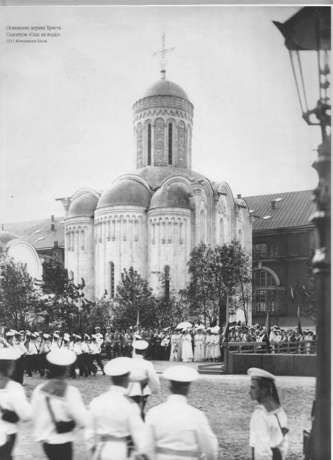28 мая 1910 года в Петербурге на набережной Невы у Новоадмиралтейского канала заложена церковь Христа Спасителя. Храм был возведен на народные средства выполнен в древнерусском стиле. Что-то общее у него было с храмом Покрова на Нерли. Поразительной красоты храм. Его строительство началось в 5-ю годовщину завершения Цусимского сражения, и храм должен был стать памятником всем морякам, погибшим и пропавшим без вести в Русско-Японской войне. Храм был двухэтажным, то есть состоял из нижнего храма во имя Св. Николая Чудотворца и верхнего - во имя Гефсиманского борения Христа Спасителя. Особое внимание заслуживает внутреннее убранство храма и , в частности, расположенный в заалтарной части мозаичный образ Спасителя, шествующего по водам. Благодаря этому панно в народе появилось название храм Спаса-на-Водах. Храм действительно являлся памятником, в нем располагались бронзовые мемориальные доски, на которых были перечисленные имена погибших моряков всех званий. Общее количество имен в храме н