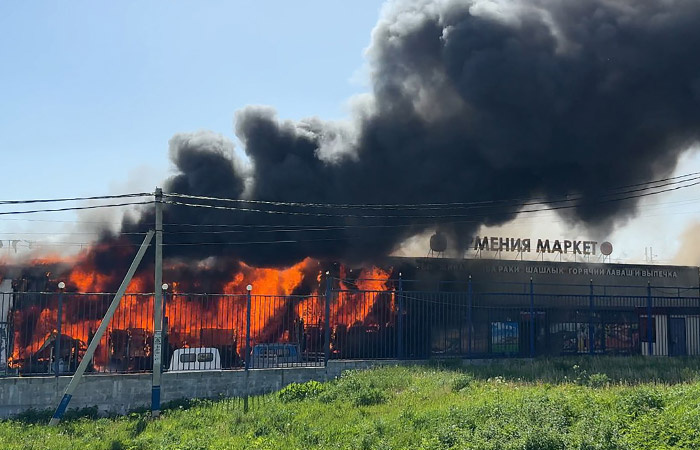"Происходит открытое горение на строительном рынке на площади 2100 кв. м. 10 человек эвакуировались самостоятельно", - говорится в сообщении.