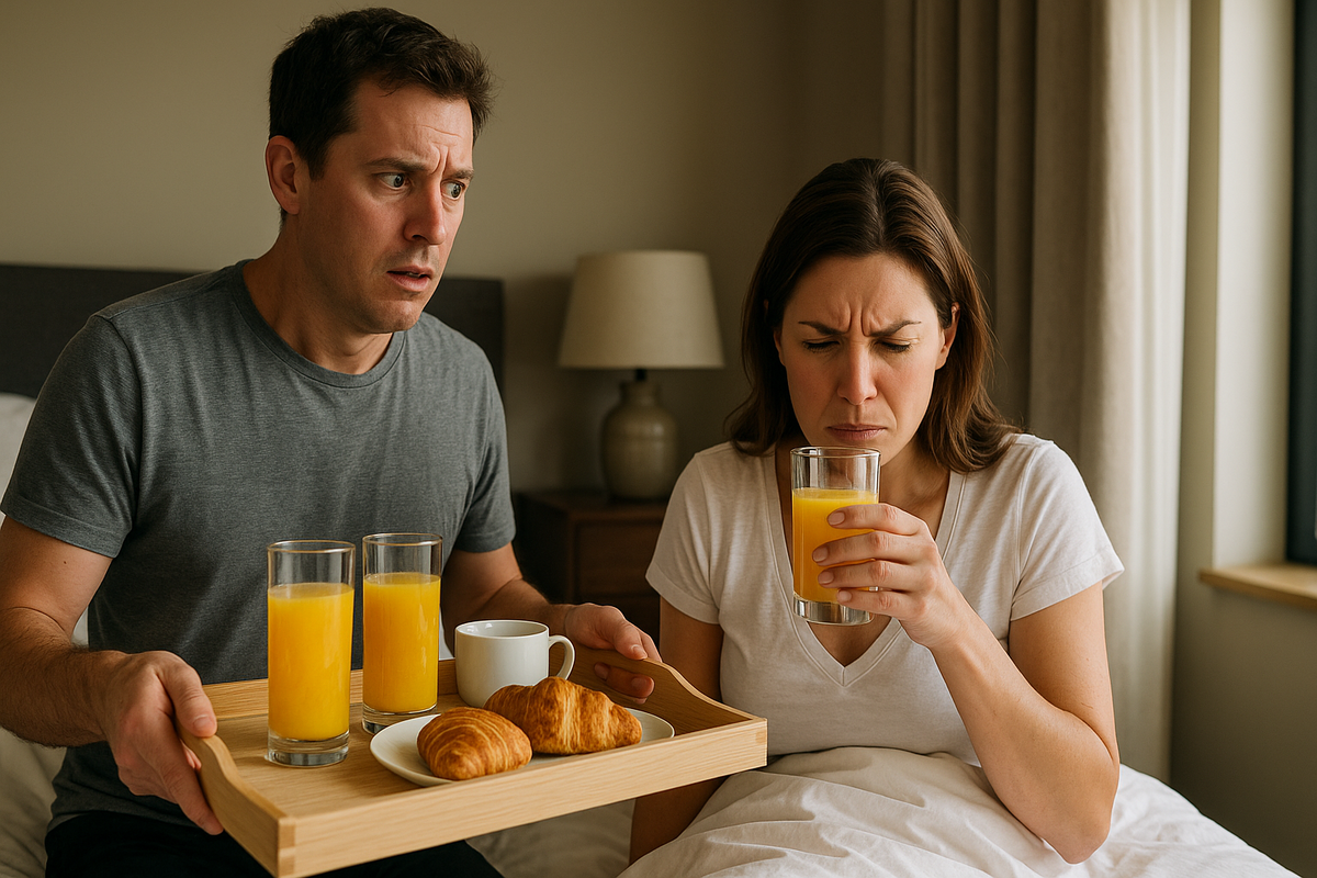 Муж вдруг стал внимательным и принёс нам свежевыжатый сок с завтраком в постель. Но запах сока насторожил меня, и я тихо поменяла наши стаканы местами. А через пять минут...