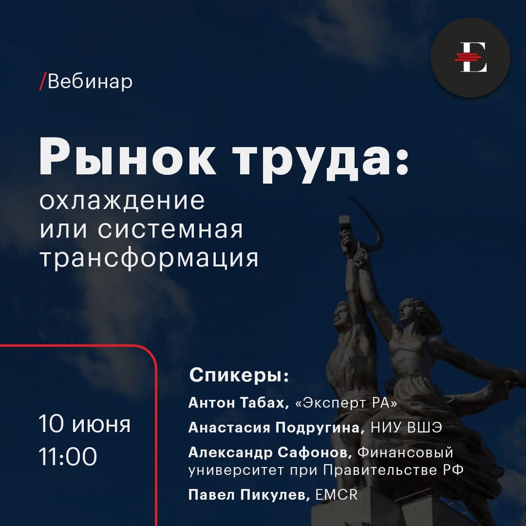 👨🏫👨🏫👨🏫👨🏫 «Рынок труда: охлаждение или системная трансформация» 🗞🗞🗞🔍 Где: онлайн Когда: 10 июня 2025 года в 11:00 мск 💬 В 2024 году дефицит кадров часто упоминался как главный ограничитель роста российской экономики. Уже в начале 2025 года рынок труда начал демонстрировать первые признаки охлаждения, однако его структурная перестройка еще не окончена. Дополнительно на него влияет и развитие технологий – большую роль продолжат играть удаленная работа, а компании начинают все больше использовать искусственный интеллект. На вебинаре 10 июня обсудим: · Надолго ли сохранится структурный дефицит кадров и насколько он ограничит рост российской экономики? · Действительно ли в 2025 году началось реальное охлаждение рынка труда и к чему оно приведет? · Как повлияет на российский рынок труда внедрение технологий искусственного интеллекта? 🎙 Ведущие: Антон Табах, главный экономист, «Эксперт РА»; Анастасия Подругина, доцент факультета мировой экономики и мировой политики,