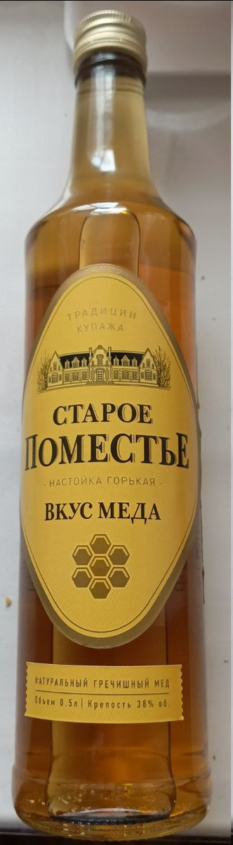Всем привет от меня, КОньячного Маньяка и наших друзей! И последняя настойка из посылки Сергея. Горькая, с натуральным гречишным мёдом, как заявлено на этикетке... Причём на контрэтикетке крупно красуется "ароматизатор пищевой "Мёд"". Ой, прощелыги! Что там ещё в составе? Вода, спирт Люкс, сироп, колер, настои спиртованные чабреца, груши сушёной, цветков липы, корицы, кориандра, МЁД натуральный. Изготовлено знакомым уже Ярославским ЛВЗ.