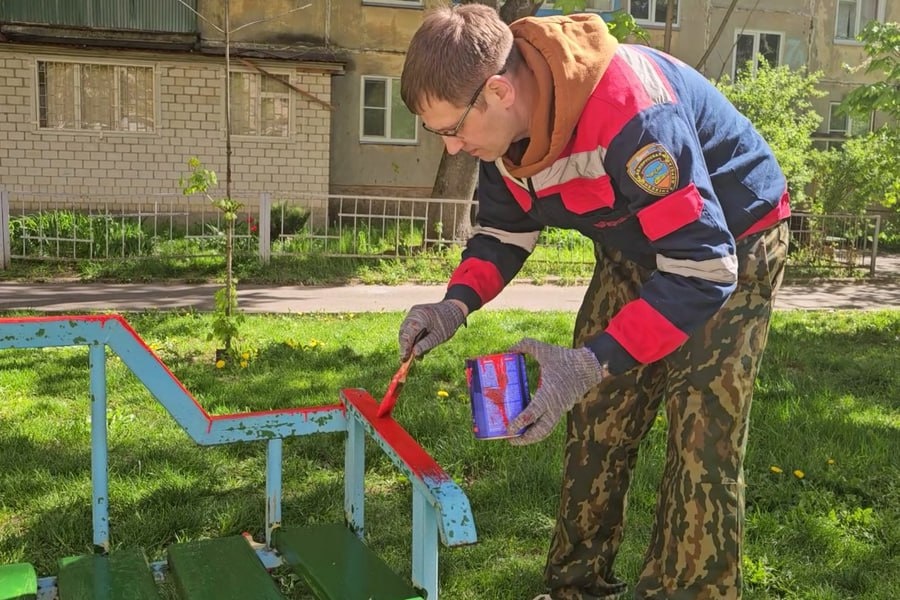 Депутат горсовета Максим Григорьев вместе с дружной командой единомышленников покрасили детское оборудование