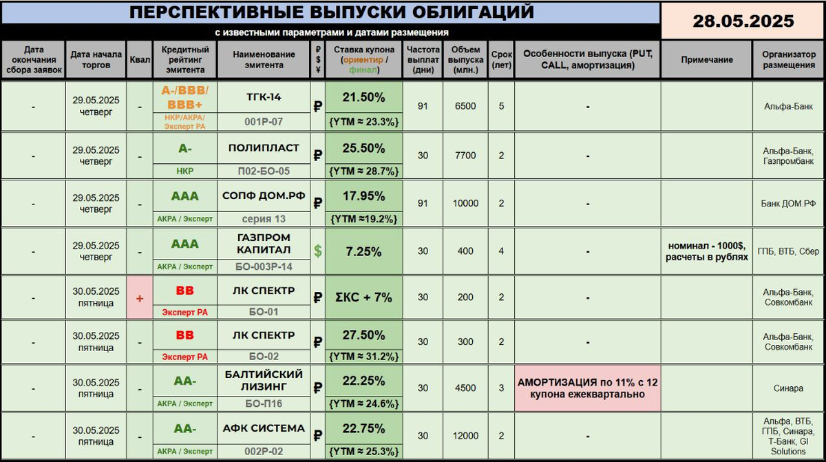 🌷 ПИОНЕР - ЛИЗИНГ БО-П03 $RU000A1013N6: купон аж номер 69 (27.07.2025) составит 27%, как и ранее. Здесь привязка к ключевой ставке, без сюрпризов, 6% премии.