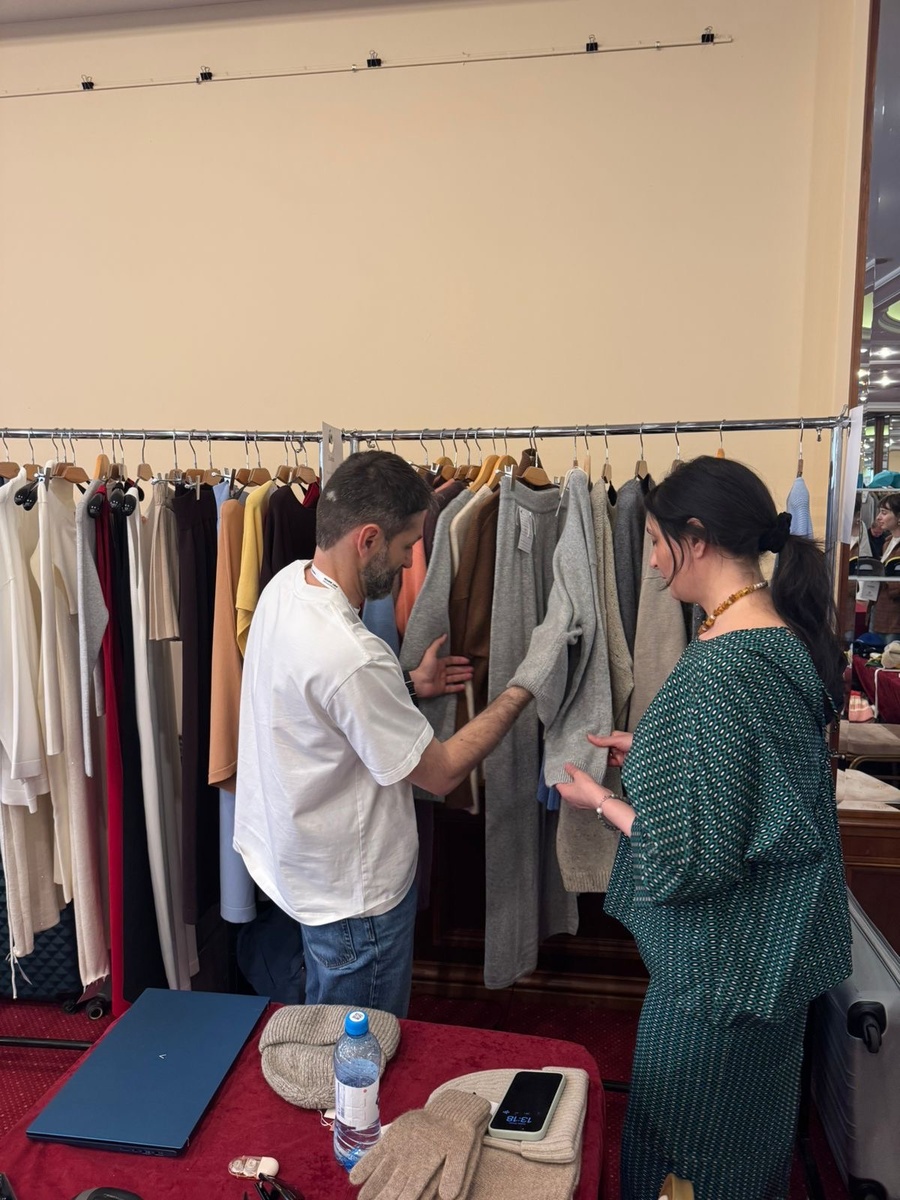 Российская фабрика Zhakko приняла участие в одной из ключевых отраслевых выставок — BEE TOGETHER в Москве, которая собрала ведущих представителей легкой промышленности и производственные компании со всей страны. Для бренда участие в мероприятии стало не только возможностью продемонстрировать потенциал собственного производства, но и важным шагом в развитии новых партнёрств. Стенд Zhakko пользовался высоким интересом среди профессиональной аудитории: в графике команды было запланировано множество встреч, и большая часть из них переросла в конкретные договорённости. По итогам выставки фабрика заключила ряд перспективных соглашений с крупными заказчиками, что открывает новые горизонты для масштабирования. На выставке Zhakko представила обширную экспозицию моделей из более чем 15 видов высококачественной пряжи европейского производства. Вниманию профессиональной аудитории были предложены изделия из капсульных коллекций бренда: платья, кардиганы, джемперы, юбки, костюмы, брюки, топы и