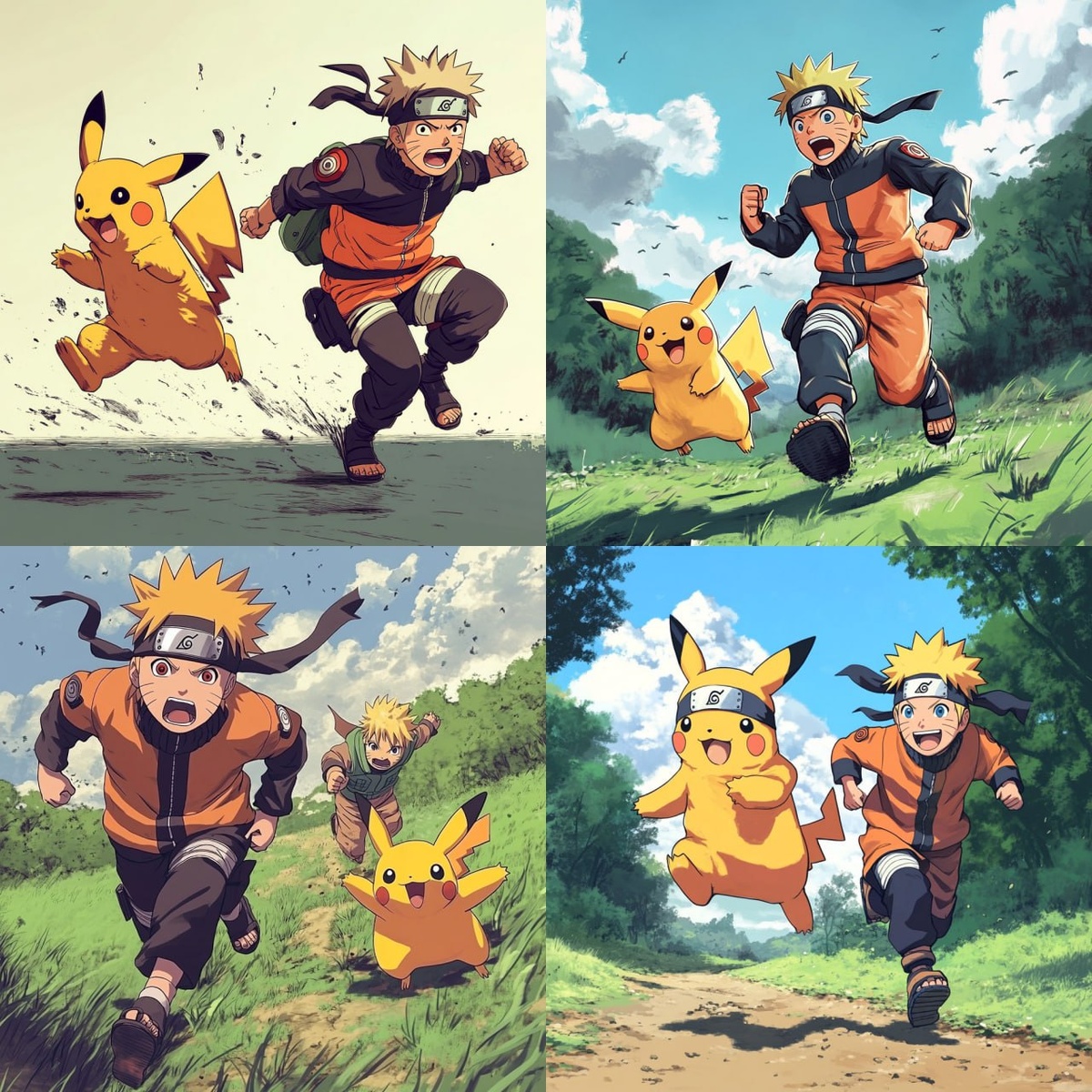 Когда Наруто встречает Пикачу... что может пойти не так? 😄 Представьте себе эпичный забег: герой Конохи и электрический любимчик миллионов бегут бок о бок! 🌀⚡️ Хотите увидеть эту удивительную картинку прямо сейчас? Просто бросьте в MidJourney промпт: "Наруто и Пикачу бегут" — и наслаждайтесь результатом! 🔥 AI продолжает радовать нас невероятными визуальными экспериментами. Попробуете? Делитесь своими шедеврами, если решитесь повторить этот забег! 😉 #нейросети #MidJourney #AI #арт #вдохновение