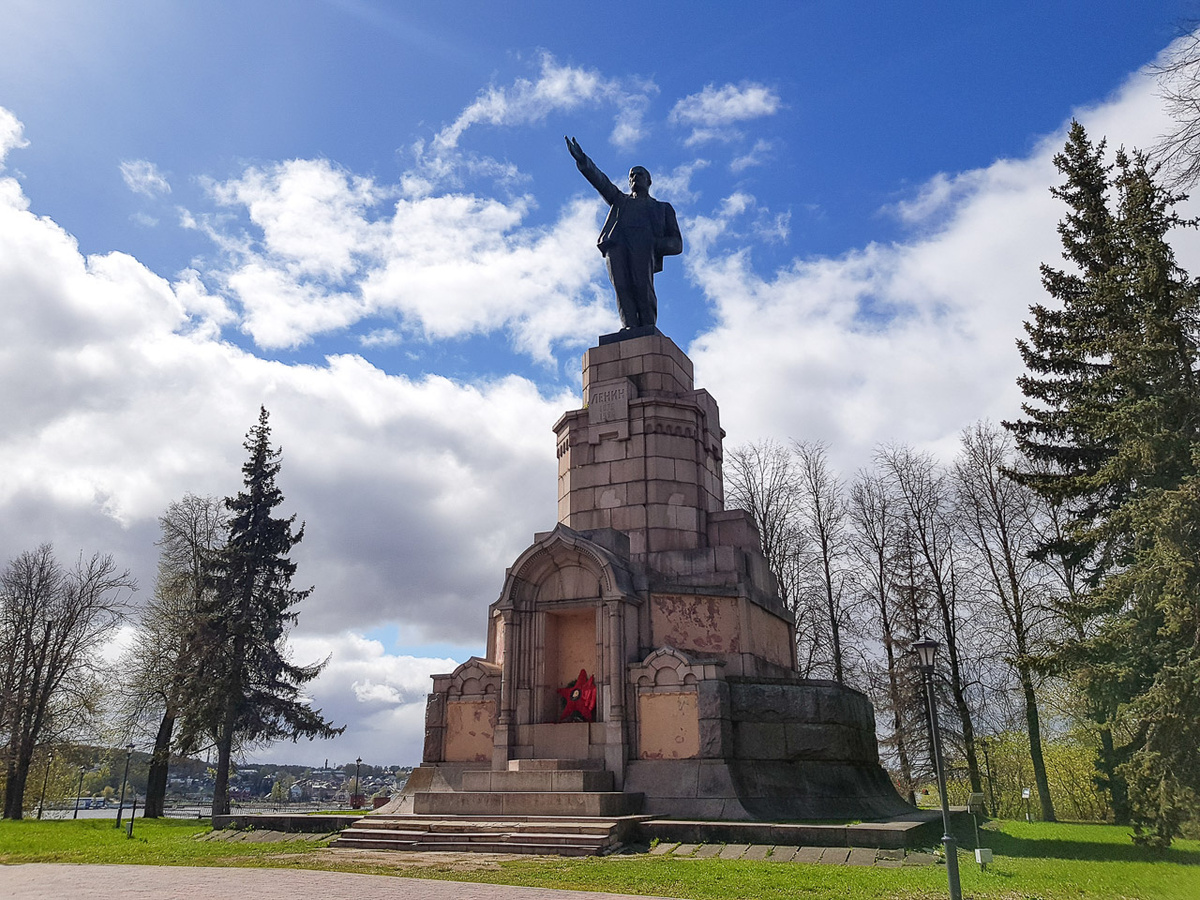 Памятник Ленину в Костроме — одна из самых интересных и необычных достопримечательностей города, обладающая богатой историей и уникальным архитектурным решением. Памятник установлен в Центральном городском парке Костромы, на высоком волжском берегу, что делает его видимым с разных точек города. Изначально постамент, на котором установлен памятник Ленину, задумывался совсем для другого монумента — в честь 300-летия дома Романовых. Закладка этого памятника состоялась 20 мая 1913 года в присутствии императора Николая II и его семьи, приуроченная также к 760-летию основания Костромы. Проект академика А. И. Адамсона: «Воздадите Кесарево Кесарю, Божие Богу» предусматривал сооружение высотой 36 метров с 26 бронзовыми скульптурами исторических личностей, включая Михаила Фёдоровича, Патриарха Филарета, Ивана Сусанина и других значимых фигур российской истории. Однако из-за Первой мировой войны и последующих революционных событий памятник Романовым так и не был достроен. Отлитые скульптуры