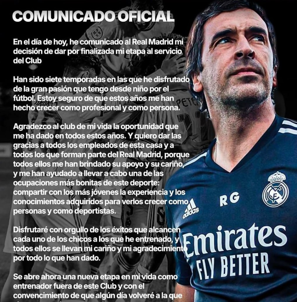 ❌ Рауль покидает работу тренера «Кастиль». «Сегодня я сообщил «Реалу» о своем решении завершить свою карьеру в клубе. Это были семь сезонов, в течение которых я наслаждался жизнью, воплощая в жизнь свою страсть к футболу с самого детства. Я уверен, что эти годы помогли мне вырасти как в профессиональном, так и в личном плане. Я благодарен клубу моей жизни за возможность, которую он мне давал все эти годы. Я также хотел бы поблагодарить каждого сотрудника и всех, кто является частью «Реал Мадрида» – все они оказали мне поддержку и любовь и помогли мне выполнить одну из самых полезных ролей в футболе: делиться своим опытом и знаниями с молодыми поколениями и наблюдать, как они растут как игроки и как личности. Я буду очень горд, если увижу их успех, потому что знаю, сколько они вложили. Теперь начинается новая глава в моей тренерской карьере, вдали от клуба, но я уверен, что однажды я вернусь туда, где всегда будет мой дом. Спасибо всем. ¡Hala Madrid!» 🤍Реал Мадрид//Madridista Fa
