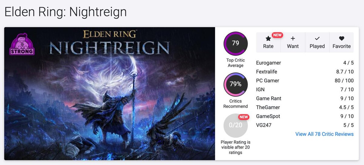 Elden Ring: Nightreign получила 79 баллов из 100. Это уже на основании 78 обзоров, так что рейтинг критично не изменится. Что пишут? Позитивное: Elden Ring Nightreign — это взрыв адреналина и дань уважения франшизе, которую фанаты Souls просто проглотят с удовольствием. Хотя игра местами кривоватая и с багами, она несёт дух сообщества и напоминает, зачем мы все влюбились в Elden Ring. Мультиплеер здесь — не просто отсылка, а настоящий прорыв: сложные боссы, бескомпромиссный экшен и жестокий вызов, где ошибки караются молниеносно. Игра заставит вас и ваших друзей выкладываться по полной — никакого снисхождения. Геймплей получился коротким, но очень насыщенным. Для многих Nightreign — свежий взгляд на серию и заслуженное обсуждение в списках лучших. Игра отлично балансирует прокачку и командные бои, заставляя забыть про сольное прохождение. Это не типичный Soulslike — это взрыв эмоций, гонка на выносливость, которая держит в напряжении всю ночь. FromSoftware удалось сохранить суть S