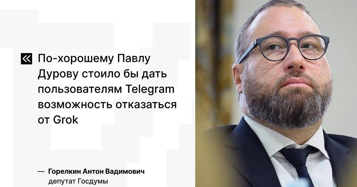 Гантон уГорелкин заявил, что появление Grok в Telegram — это «не очень хорошая» новость