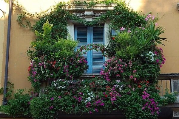 Завидно украшенные цветами и зеленью балконы и окна определенно выделяются среди строгих стен жилых и административных зданий.
