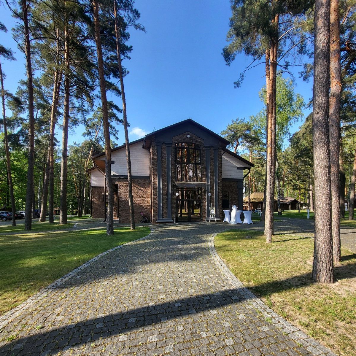 Двухэтажное здание ресторана, выполненное из тёмного камня и светлого дерева занимает центральное место на территории всего загородного комплекса.
