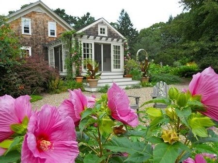 Добрый день, дорогие домоседы. Мы сегодня расскажем про гибискус садовый в оформлении дизайна сада. Достаточно много растений тропического происхождения давно адаптировались и отлично произрастают в условиях нашей страны. Особо ценится садовый гибискус. Его красивые, яркие и большие цветки украшают даже самые неприглядные уголки сада. В данной статье пойдет речь о том, как использовать гибискус в дизайне сада. Гибискус садовый – это не совсем кустарник. Больше он похож на небольшое, хорошо разветвленное деревце, имеющее не слишком толстый ствол и широкую крону. Кора со временем хоть и затвердевает, но все же структура ее остается гибкой. Именно это свойство дает дизайнерам возможность придать кроне различную форму. Например, можно заплести «косу» из нескольких веток или скрутить ствол в виде веревки из трех молодых деревьев. Такие манипуляции не вредят росту и развитию гибискуса. На протяжении многих лет деревце все также будет радовать вас своими яркими тарелкообразными цветками. Гово
