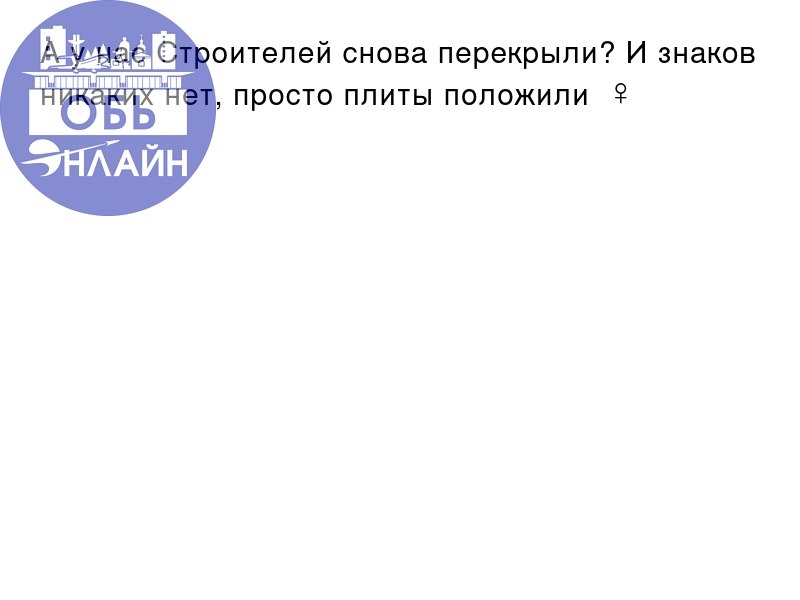 ↗ А у нас Строителей снова перекрыли? И знаков никаких нет, просто плиты положили 🤦♀️ vk.com Подробнее на https://vk.com/ob.gorod #городобь #городобьонлайн #толмачево