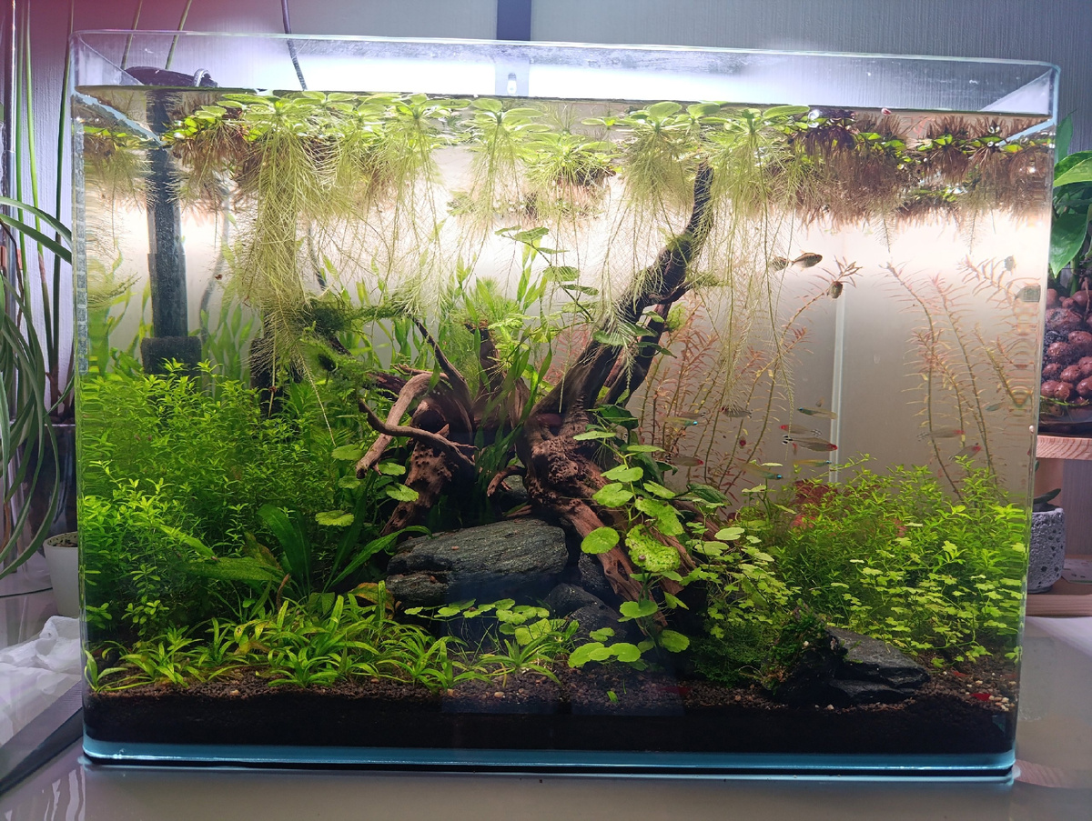 Все растения приживаются и растут хорошо. Раз в неделю выкидываю контейнер плавающих растений и тех, кого сильно одолели водоросли.