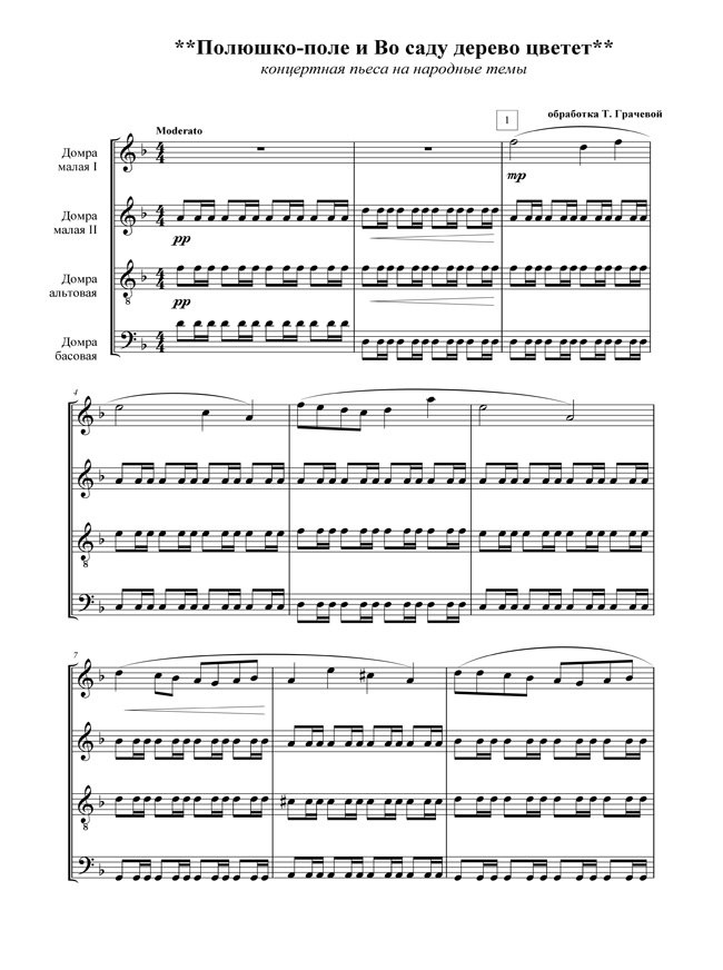 https://partitur.ru/Ensemble/П.Ensemble.html Новая партитура‼️."Полюшко-поле"и "Во саду дерево цветет"- (Конц.пьеса на народные темы) обр. Т.Грачевой для Ансамбля нар.инстр.(квартет домр) Стоимость партитуры смотрите в начале этого поста по ссылке, на сайте Partitur.ru.