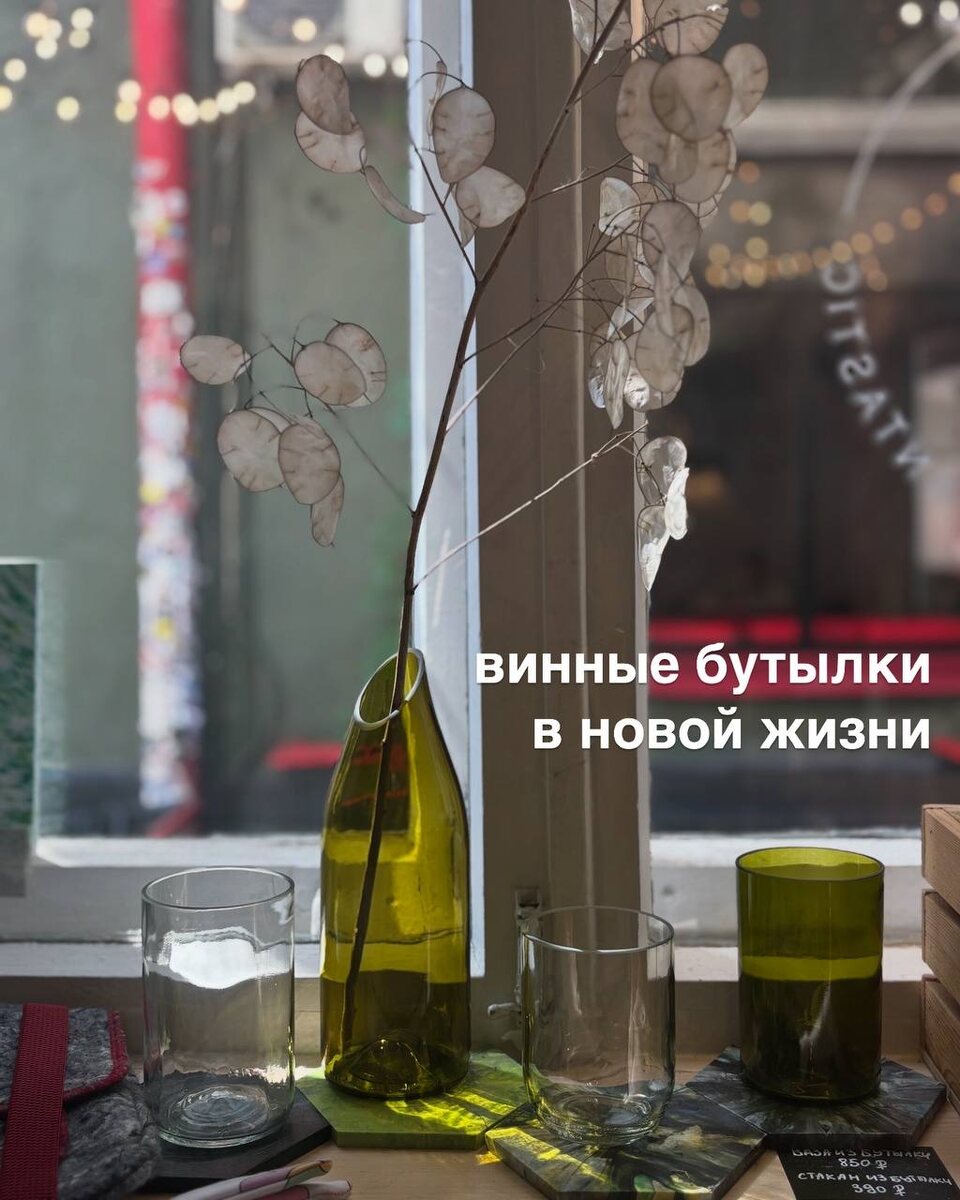в @noplasticitsfantastic стаканы и вазы, которые ранее были винными бутылками, в прошлой жизни, но им дали новую жизнь, чтобы своей уникальностью приносить радость и красоту в noplasticitsfantastic.store или выбрать лично в шоуруме на Китай-городе
