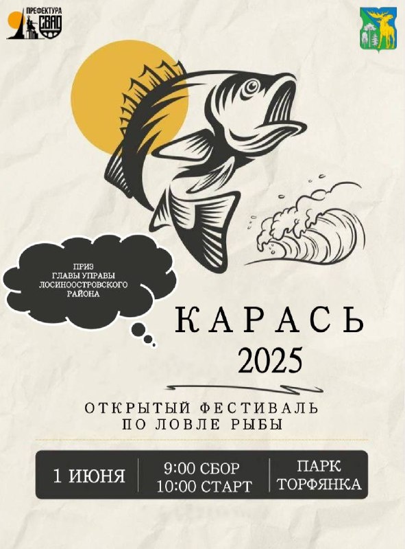 У соседей 1 июня состоится фестиваль рыбной ловли «Карась-2025». 📍Парк «Торфянка» ⏰1 июня в 9:00 ✏️Заявку на участие можно подать по электронной почте yrlos@mos.ru до 30 мая или в день проведения мероприятия. 👉С положением о проведении фестиваля можно ознакомиться по ссылке