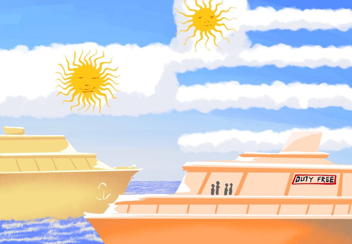 Жизнь пассажиров на борту может разнообразить магазин дьюти-фри — я охотилась за духами Hermes Un Jardin Sur Le Toit. Охота прошла неудачно — Hermes был, но другой. Эти духи, конечно, можно купить и в Аргентине, и в Уругвае, но в полтора–два раза дороже.