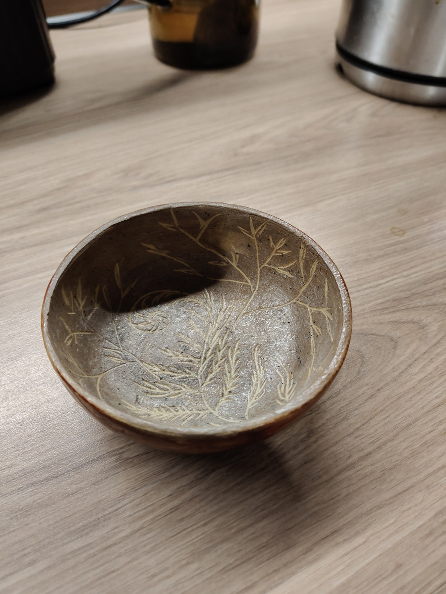 Пепельница под конкретного юзера - курильщика ) Сразу скажу, мне не зашла эта цветовая характеристика. Мне колористика - НЕ НРАВИТСЯ. Было конкретное ТЗ (техническое задание) от весьма взрослого человека ( почти под 70)... Мол хочу пепелеку ( я вместе с минздравом предупреждаю, что курение - это бяка) такую по цвету, что когда тушу хабарики, то их почти не видно. Это кстати публикация из серии юзаемых изделий, человек в него тушит бычки ))). На фото кстати она не девственная, там пару хабариков затушено. И их реально почти не видно из-за удачной цветовой гаммы ))). Значит ТЗ выполнено, хоть мне самой мой результат труда и не зашёл. Это кстати дилемма, как я понимаю, весьма частая у типо творцов (я это и к себе отношу), когда мол мы все и себя такие не принимаем желание заказчика, так как это не достойно нашего величества. Бесит такой подход, пытаюсь его гасить в себе жёстко. Это как раз такой пример. Само изделие из низкотемпературной глины, размером в диаметр порядка 10 см, высота