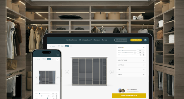 Для большинства мебельных компаний ответ очевиден: очень многое. Премиальные, сложные встроенные конструкции всегда требовали личных консультаций, индивидуальных чертежей и недель согласований. Но немецкая компания нашего клиента, специализирующаяся на элитных шкафах по индивидуальным размерам, решила изменить этот подход.
