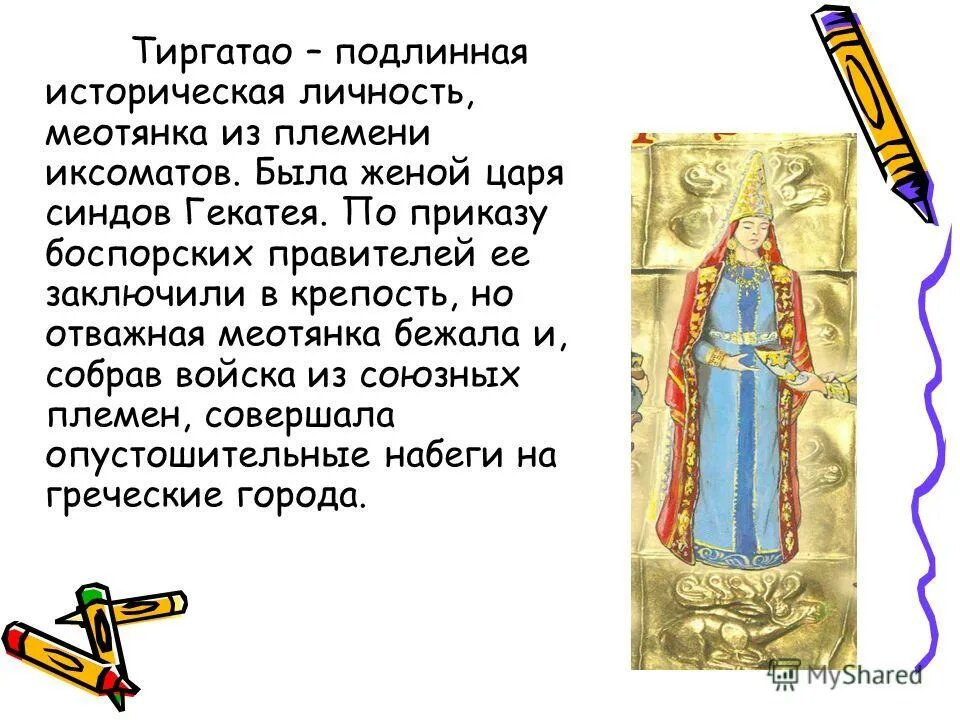 ТИРГАТАО - ЦАРИЦА СИНДОВ Мной давно была подготовлена публикация о прежних народах и государствах в Причерноморье, так или иначе связанных с античной историей Анапы. Это повествование было разбито на несколько частей и помещено в канал. История местных территорий начинается с государства синдов и их приморского поселения, названного историками Синдской гаванью. В общем потоке греческого славословия не умолкают версии о греческом основании портового города. Однако, Помпоний Мела (15-60 гг.) основателями поселения считает местные племена: "В стране синдов был основан тамошними жителями город Синд (Синдос)". Не обошли его вниманием Геродот, Страбон, Клавдий Птолемей, Стефан Византийский. Среди многочисленных родственных племен синды заметно выделялись в культурном и экономическом развитии. В конце V века до Р. X. они создали государство Синдика, чеканили свои монеты с изображением Геракла, правда, на монетном дворе одного из греческих городов. Они успешно занимались земледелием, разводили