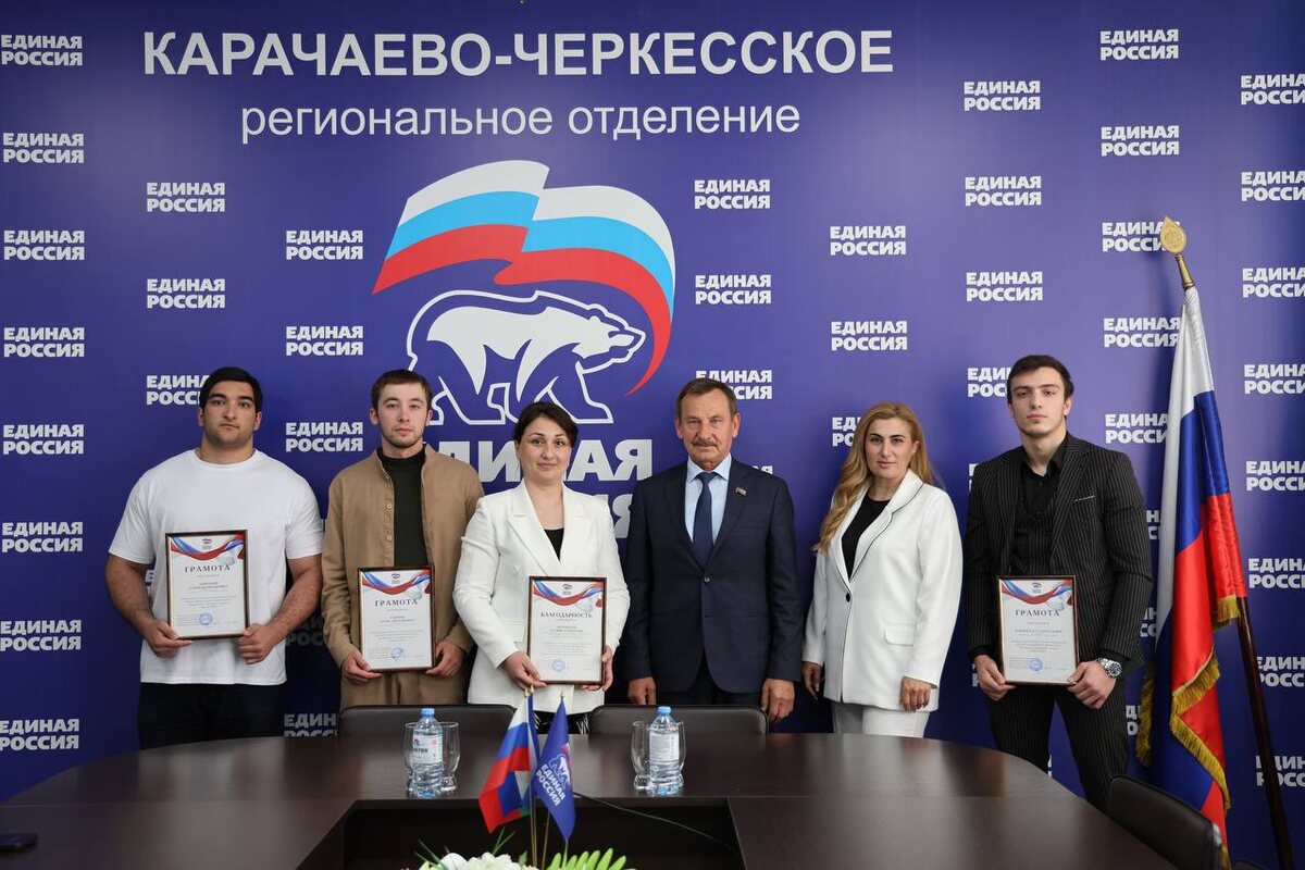 В исполнительном комитете партии «Единая Россия» сегодня чествовали региональных победителей Всероссийской просветительской акции «Диктант ЖКХ», который был организован по всей стране партпроектом «Школа ЖКХ». На встрече региональный координатор проекта, депутат Парламента КЧР Алексей Ганшин вручил награды участникам, которые показали лучшие результаты и набрали наибольшее количество баллов, успешно справившись со всеми вопросами теста. Это студенты Юридического института Северо-Кавказской государственной академии Дамир Лайпанов, Дахир Узденов, Расул Хапаев. Благодарностью была отмечена старший преподаватель кафедры «Гражданское право и процесс», заместитель директора по молодежной политике Юридического института СКГА Мадина Боташева. «Такие акции дают возможность глубже погрузиться в тему, вынести для себя что-то новое, и очень приятно сегодня видеть среди победителей молодежь. Это значит, что интерес к теме жилищно-коммунального хозяйства растет, они хотят разбираться в своих правах,