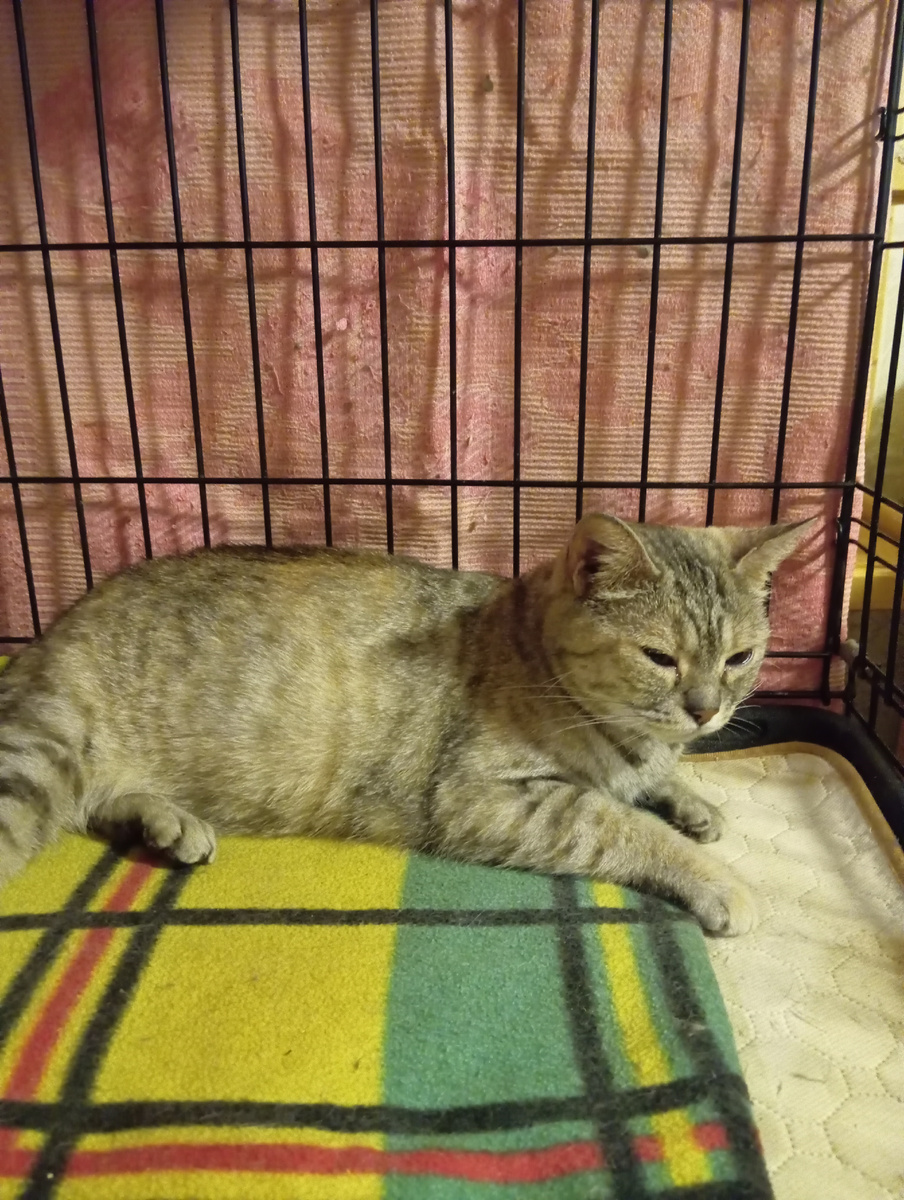 Взрослая кошка, серьезная, рычит! И не пугливая!
