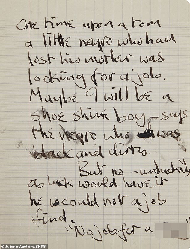 Стихи авторства Джона Леннона нашли через 64 года. Джон рассказал историю о чернокожем безработном парне, который был “чёрным и грязным” и искал работу. Стихотворение было написано во время пребывания участников группы Битлз в Гамбурге в 1961 году. 〰〰〰〰〰〰〰〰〰〰〰 Стихотворение было вырвано из блокнота формата А5, который Джон хранил в гамбургской квартире немецкого фотографа Астрид Кирхгерр, дружившей с участниками группы. Чёрными чернилами в нём написано: В присущей ему манере в стихотворении, написанном верлибром (свободным стихом), Леннон не только каламбурит, но и использует несколько сленгово-ругательных словечек. Так, ‘tom’ с маленькой буквы - это не имя, а презрительное обозначение чернокожего, подхалимствующего перед белыми. Негритёнок (‘negro’) у Леннона не просто грязный, но ещё и чёрный (‘black’). Ну, и на скане опуса нам запикали (у автора, понятное дело, оно написано полностью) обидное слово ‘nigger’ (‘ниггер/нигга’). Кирхгерр подарила стихотворение другому человеку, и оно