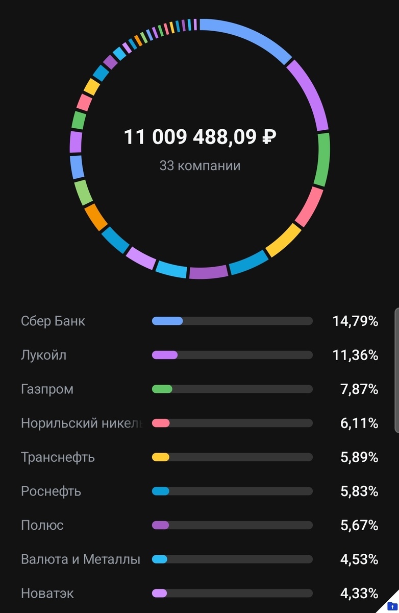 Всех приветствую, Прошел месяц и можно подводить итоги в целом с учетом пополнений портфель не поменялся за месяц. И май был закрыт на отметке в 11 млн. рублей Апрель завершился на отметки 11,053 млн рублей Ради интереса посмотрел что было год назад: 9,8 млн рублей Впервые в этом году портфель был пополнен из вне на 200.000 рублей. Получил кварталку на работе и хотя изначально планировалось засунуть все 300 в основной портфель, но в итоге я решил 100.000 закинул в портфель с дальними ОФЗ и на основной осталось только 200.00 Покупки: Ну и приглашаю в мой ТГ канал