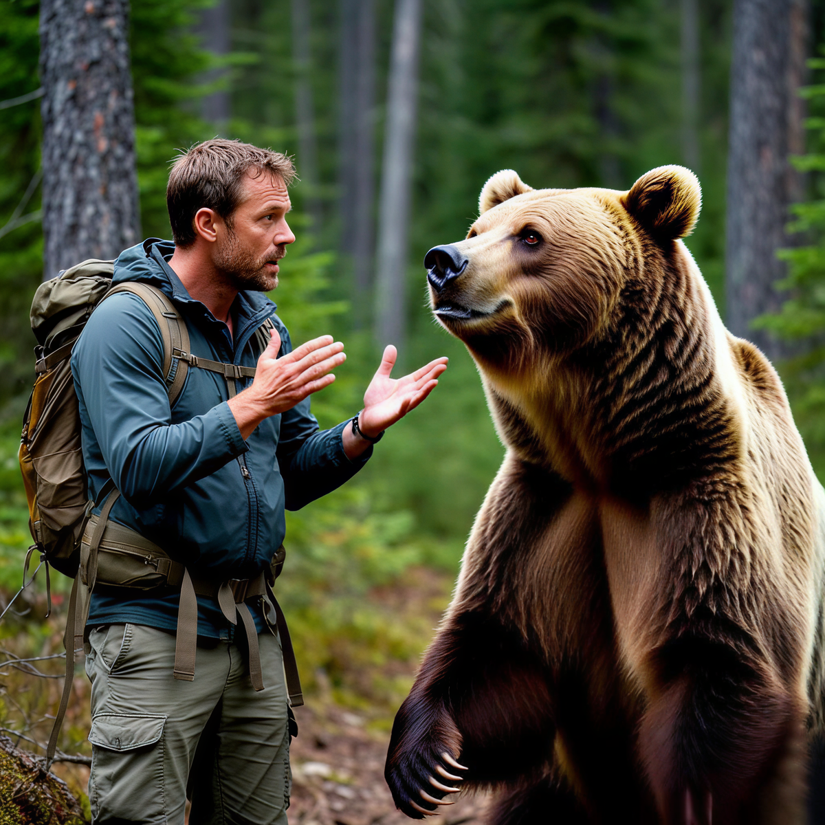 🔸 Медведь, вернувшись в свою берлогу, еще долго перебирал в голове случившееся. Обычно после встречи с человеком оставался лишь привкус страха и желание залечь на дно, но в этот раз все было иначе. В голове крутились не мрачные мысли о ружьях и ловушках, а комичный образ растерянного человека, будто случайно попавшего в кадр комедийного фильма.