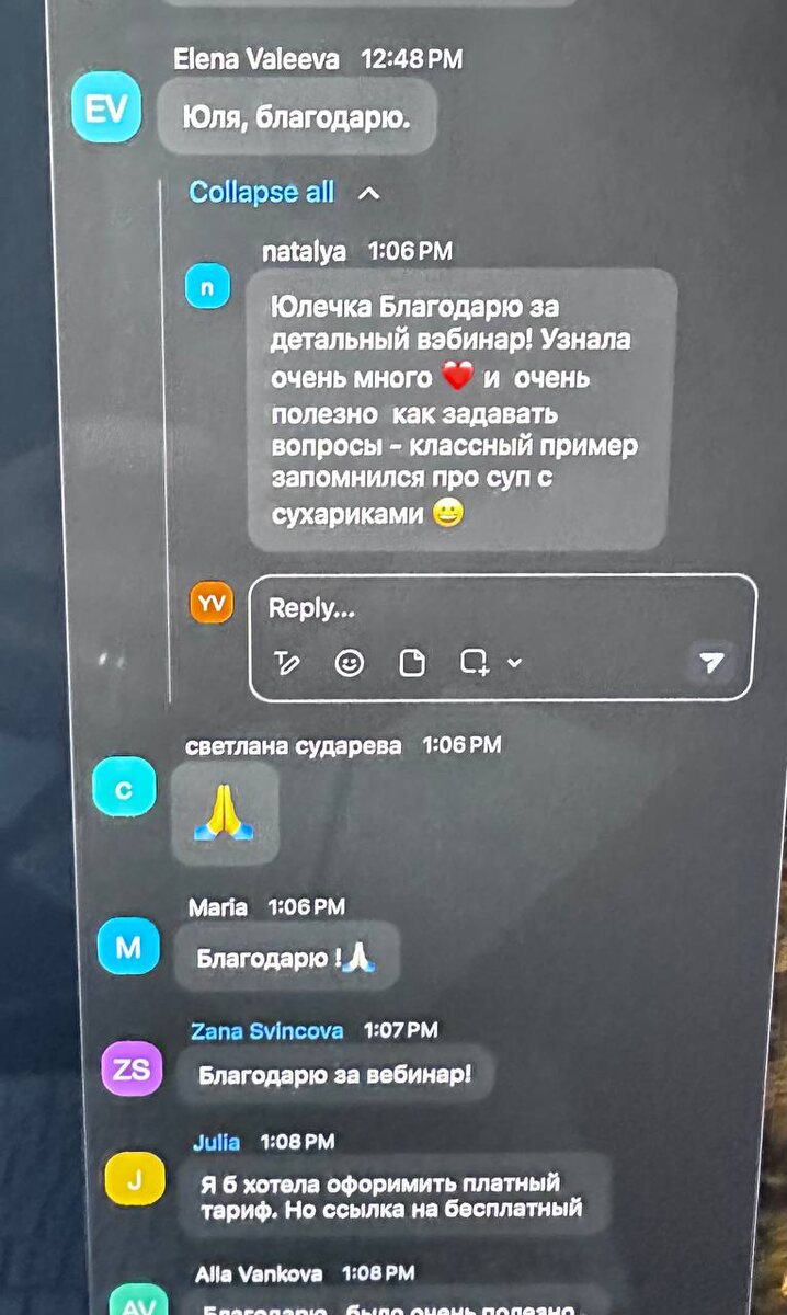 Благодарю за вашу включенность на практикуме 🙏 Рада была сегодня с вами пообщаться
