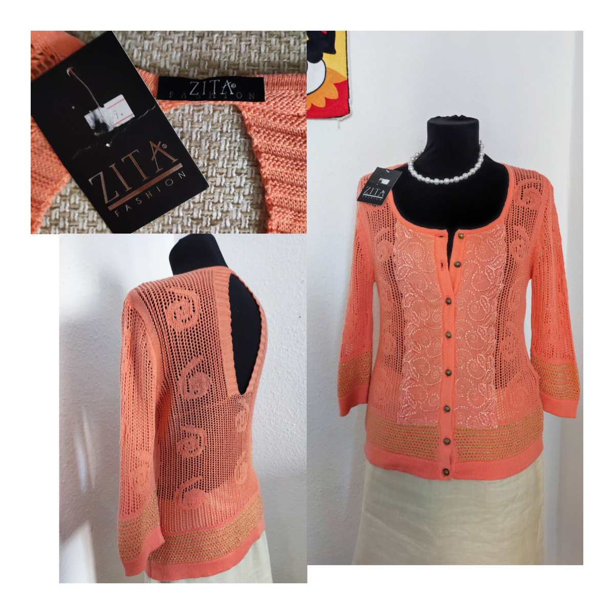 Всем привет! Сегодня оформляла Авито доставкой из Москвы вещи, которые мне отправлял сын. Если пару дней назад самая дешевая доставка была 209 рублей, сегодня -519 рублей. А я понять не могла, почему ни одного заказа у меня уже два дня. Оказывается опять доставка поднялась. И под конец дня написала девушка. Она хотела купить фигурку за 100 рублей, а ей предлагают доставку за 400 рублей. К сожалению, помочь ей ничем не могла. Просто я осталась без заказа, а она без фигурки. Пока грустить на эту тему не буду, лучше сделаю сегодня рубрику "Продаю". Хочу показать свои находки, о ценности которых я узнала только когда стала искать информацию о брендах перед выгрузкой объявлений. А начну с простой, но очень красивой кофты. Она хоть и обычная, но думаю, что достойна того, чтобы показать ее здесь тоже. 1. Красивая и нежная кофта турецкого бренда Zita. Кофта новая с этикеткой, размер S/M. Ее лёгкая ажурная вязка создаёт необыкновенно женственный мягкий образ, на спинке есть кокетливый вырез