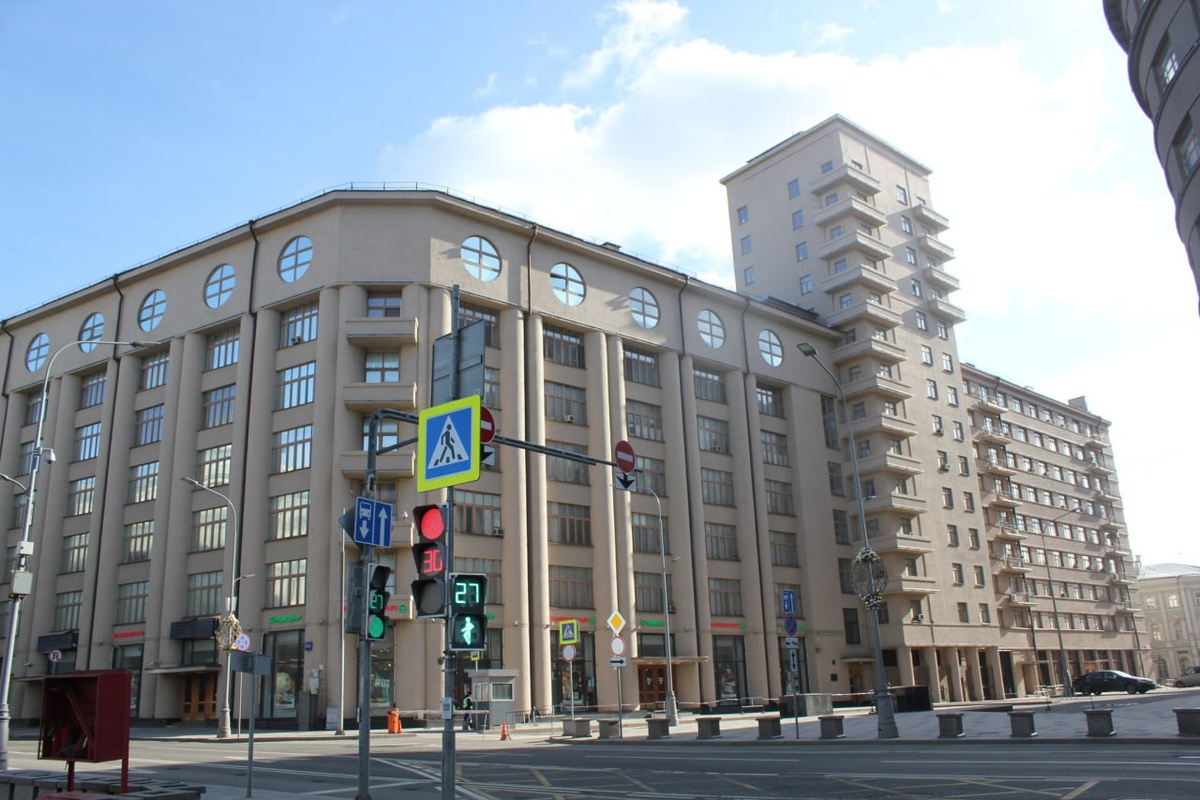 (Большая Лубянка, 12/1) Грандиозное здание на углу Большой Лубянки и Фуркасовского переулка — настоящий памятник эпохи. Построенный в 1928–1931 годах, этот дом сочетает в себе строгую монументальность и смелый конструктивизм, вызвавший немало споров. Но начнём с самого начала. Всё началось в 1923 году, когда в морозный февральский вечер в штабе Московского округа войск ОГПУ группа сослуживцев обсуждала важность спорта для военных. Разговоры о пользе физических упражнений завершились решением создать спортивное общество, которое объединило бы гимнастов, легкоатлетов и футболистов. Название предложил Леонид Недоля-Гончаренко, бывший рабочий завода «Динамо». Так появилось знаменитое общество «Динамо», а вместе с ним и бело-голубой значок в форме ромба — символ, который стал знаковым не только для спортсменов, но и для целой эпохи. К 1928 году идея получила развитие: было решено построить жилой дом для членов общества. Архитекторы Иван Фомин и Аркадий Лангман задумали грандиозный архите