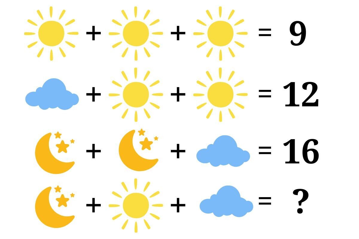 Иногда самые простые на вид головоломки оказываются настоящим испытанием. Перед вами — задачка, которая гуляет по интернету под грифом «для детей», но на деле иногда сбивает с толку даже тех, кто отлично дружит с логикой и математикой. В этой головоломке вместо чисел — солнце, облака и луна. Каждому символу соответствует определённое число. Ваша задача — разгадать, какое именно, и тем самым правильно решить последнюю строчку. Сможете разгадать, что скрывается за этими милыми значками? Или попадётесь в ловушку, как многие другие? Хоть эта головоломка и рассчитана на детей, на ней спотыкаются даже взрослые. Удачи! ... Продолжение читайте тут. (Или тут.)
