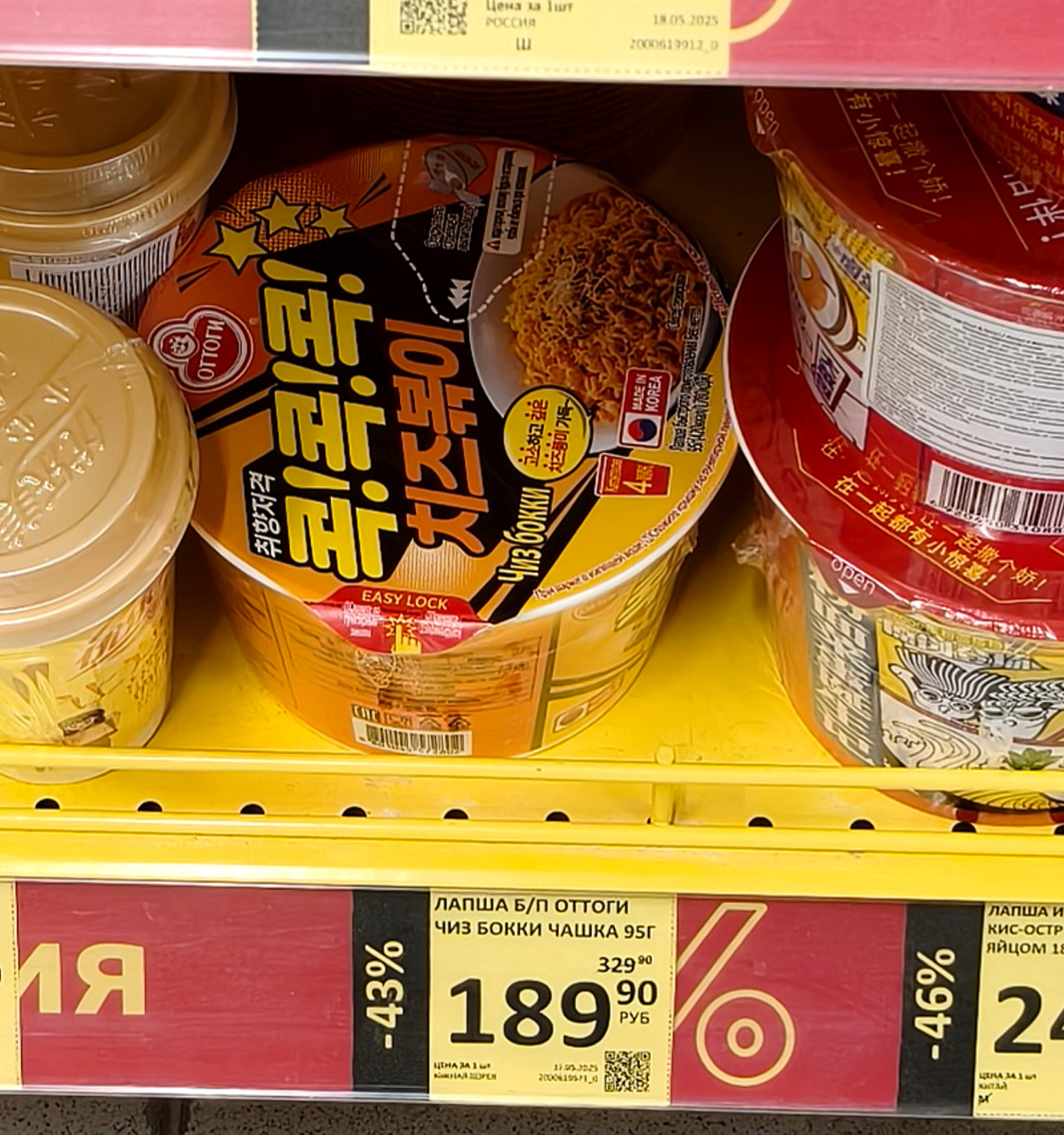 Всем привет! Купил на пробу ещё одну сырную лапшу от Оттоги в Дикси. Я уже одну там покупал сырную, надеюсь что это не тоже самое. Хотя это какое-то Чиз Бокки, а там была лапша Чиз Рамен. Здесь есть место для слива воды и ещё можно как-то сложить крышку и что-то зафиксировать. Если честно, я даже сначала не обратил внимание на это. Да и потом я не понял как этим пользоваться и зачем оно нужно. Может кто знает? В составе пшеничная лапша с огромным количеством добавок. Вот они приводят информацию и не могут нормально перевести. Не через переводчик на камере телефона. Вроде бы серьезная фирма. Или это фишка у них такая. Лапшу нужно запарить и слить всю воду. Потом замешать с сырным порошком. А также можно ещё довести до готовности в микроволновке. Всего "пол минут". И "более насыщенный сырный вкус будет". Ну что ж попробуем. Вот он единственный пакетик приправы. Заливаю горячей водой и делаю по инструкции. Отверстие для слива воды. Пришлось подцеплять ножом, чтобы оторвать вер