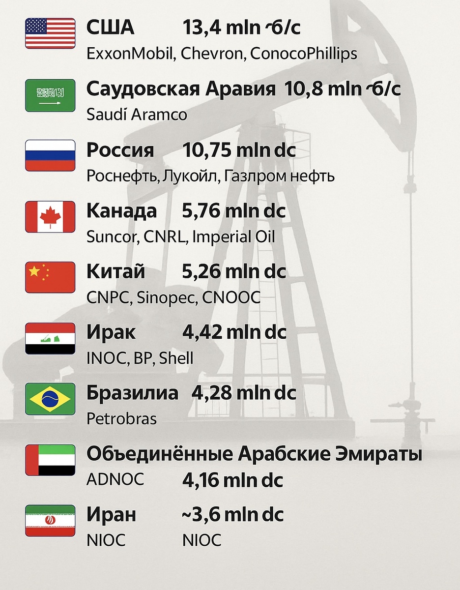 Следите за этими странами — они задают темп и цену жизни в буквальном смысле слова. Мировая энергетика на пороге перемен, но нефть в 2025 году остаётся основой глобальной экономики.
