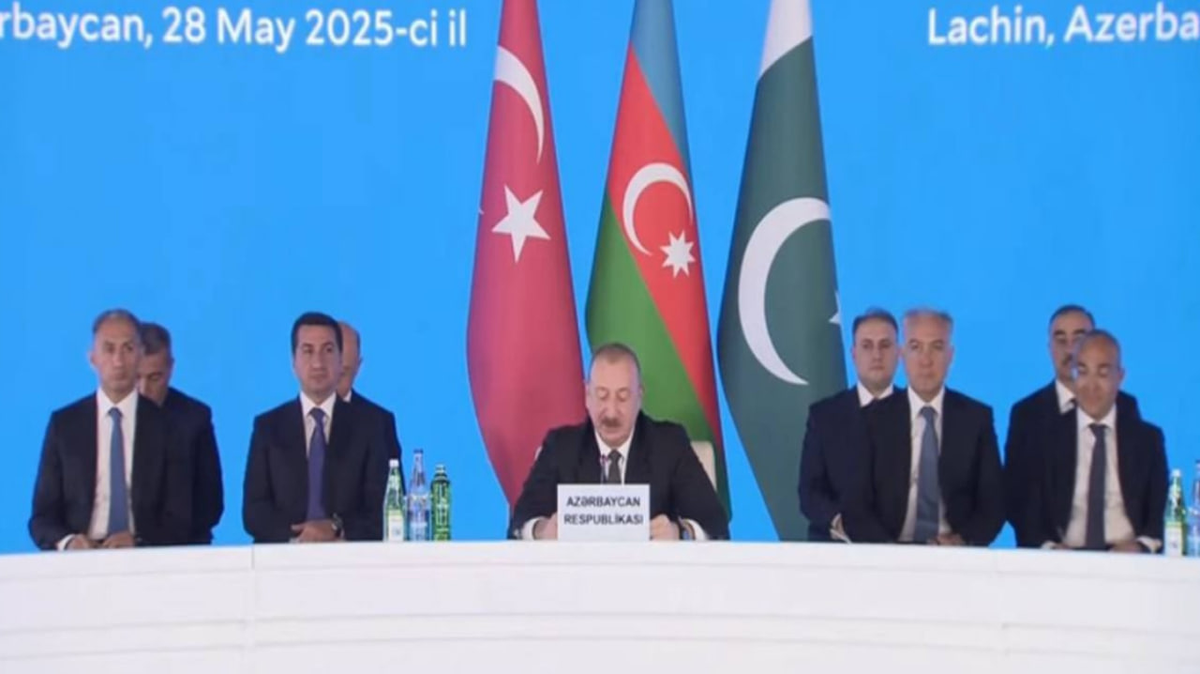 Президент Азербайджана Ильхам Алиев выступил на трёхстороннем саммите в Лачыне, где подтвердил приверженность Баку, Анкары и Исламабада принципам суверенитета, территориальной целостности и международной справедливости. «Мы всегда выступали за законность и поддержку друг друга. Наши страны едины в стремлении к миру, в том числе по таким чувствительным вопросам, как ситуация между Пакистаном и Индией», — заявил Алиев. Он подчеркнул, что Азербайджан с самого начала открыто поддерживает Пакистан в мирном решении конфликта с Индией на основе норм международного права и резолюций СБ ООН. «Мы всегда радовались успехам друг друга и были рядом в трудные времена. Турция и Пакистан с первых дней 44-дневной войны оказали Азербайджану политическую и моральную поддержку. Сегодня мы вновь подтверждаем единство наших народов», — подчеркнул Алиев. Алиев отметил, что сотрудничество охватывает ключевые сферы — от энергетики и обороны до инвестиций, ИИ и космоса.