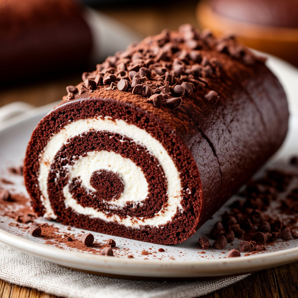 Ингредиенты для теста: · Яйца - 4 шт · Соль - щепотка · Сахар - 80 г · Ванильный сахар - по вкусу · Разрыхлитель - 1 ч.л. · Молоко - 40 мл · Мука - 100 г · Какао - 1 ч.л. (можно добавить больше для более плотного теста) Ингредиенты для начинки: · Жирная сметана - 150 г · Сгущенное молоко - 3 ч.л. · Сахарная пудра - 1 ч.л. · Ванилин щепотка Приготовление: 1. Подготовка основы: · Разогрейте духовку до 180°C · Застелите противень пергаментной бумагой 2. Приготовление теста: · Взбейте яйца с солью и сахаром до пышной массы · Добавьте ванильный сахар и молоко, продолжайте взбивать · Постепенно всыпьте муку с разрыхлителем · Добавьте какао и тщательно перемешайте 3. Выпечка: · Вылейте тесто на противень тонким слоем · Выпекайте 10-12 минут до золотистого цвета · Готовый корж переложите на чистое полотенце 4. Приготовление начинки: · Смешайте сметану со сгущенкой · Добавьте сахарную пудру, ванилин и перемешайте до однородности 5. Сборка: · Пока корж еще теплый, снимите пергамент · Смажьте