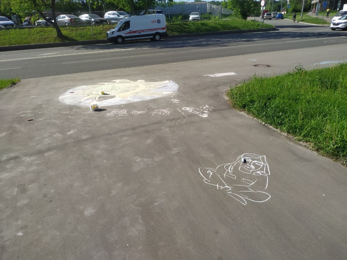Очень красивые рисунки на Курганской улице около пешеходного перехода.Люди ходят и радуются.Очень всем нравится