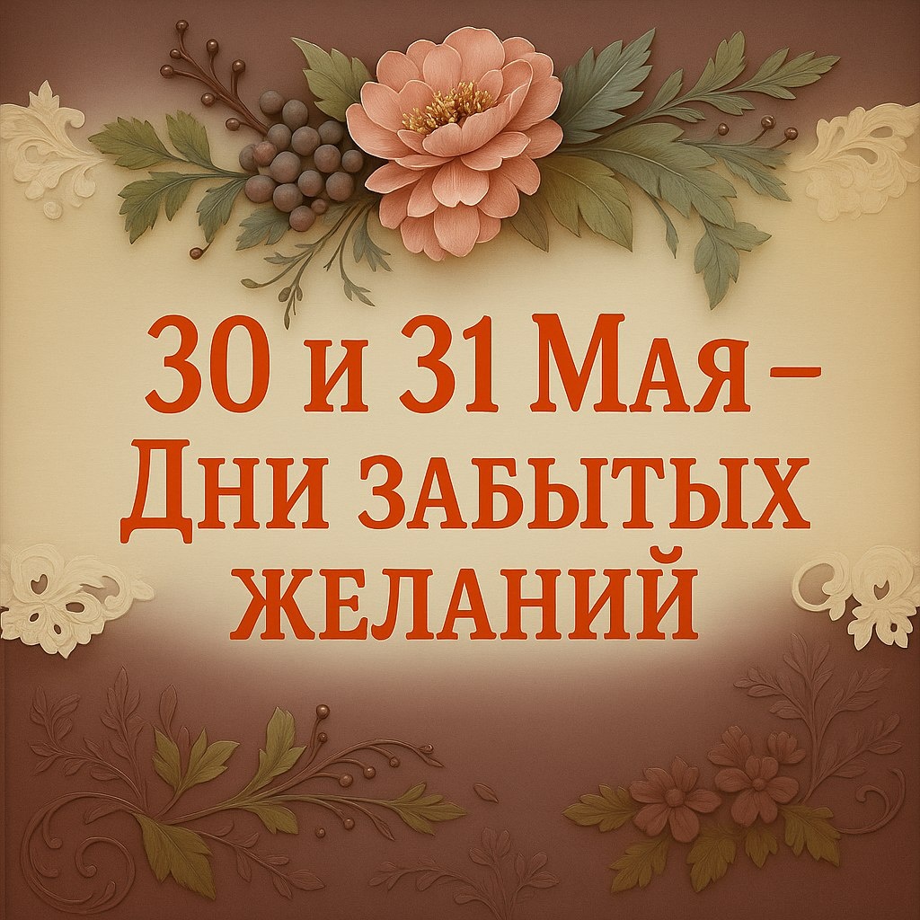 Последние дни весны всегда несут в себе особую энергетику. Именно 30 и 31 мая природа создаёт уникальный энергетический портал, который наши предки называли «Временем забытых желаний». Это особые дни, когда Вселенная возвращает нам возможность вспомнить и воплотить те мечты, которые когда-то были отложены или забыты.