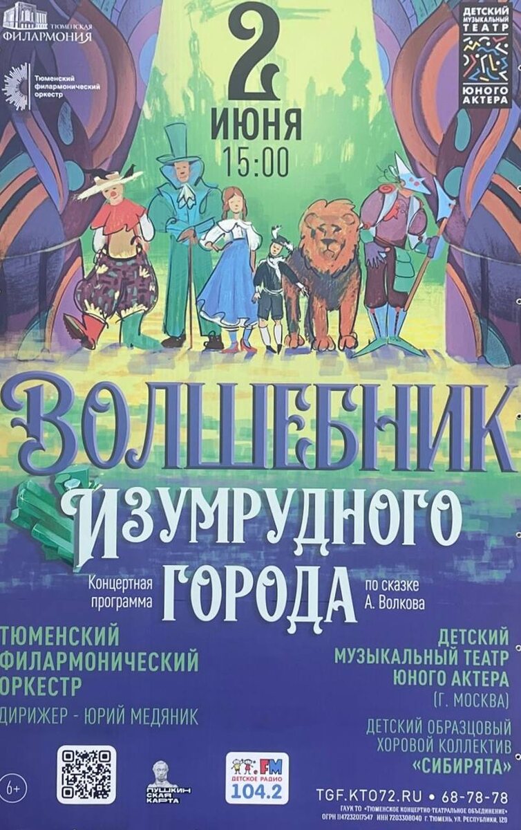 Дорогие друзья, симфонический сезон мы завершили, но концерты в филармонии с участием моего оркестра продолжаются! Совсем скоро в концертном зале им. Ю. Гуляева вместе с актёрами Детского музыкального театра юного актёра и Тюменским филармоническим оркестром мы представим представим вашему вниманию спектакль «Волшебник Изумрудного города» (музыка Евгения Загота). Я очень рад продирижировать этим спектаклем по нескольким причинам: Во-первых, это впервые гастроли ДМТЮА в Тюмень за более чем 35 лет существования этого прекрасного театра! Во-вторых, это первое сотрудничество с Тюменским филармоническим оркестром! В-третьих, это первая гастроль какого-либо профессионального детского театра в Тюмени. Все выступления предыдущих коллективов были либо любительские, либо самодеятельные, а здесь - профессиональный детский столичный театр! И, наконец, в-четвертых, это потрясающе красочный и красивый спектакль, настоящий праздник, который хочется смотреть и слушать снова и снова! Д