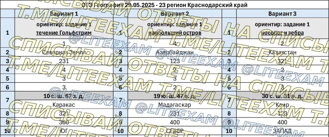 [29.05.25] Официальные варианты ОГЭ по Географии (23 регион) Реальные сливы ОГЭ на все регионы РФ