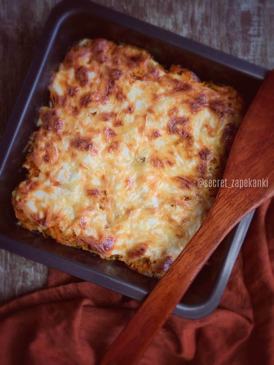 Блюдо крайне простое и крайне вкусное. Которое собственным примером так и хочет дать совет: «Не усложняй!». А к советам иногда стоит прислушиваться. Готовим: - лук 1 шт. - морковь 1-2 шт. - чеснок 2 зубчика - печень куриная 500 г - сметана 20% 80-100 г - сыр твёрдый 100 г - масло растительное 2 ст. л. (и немного для формы) - соль, перец Форма любая подходящая или, как у меня, 22,5*22,5*4,7 см. Лук нарезаем мелким кубиком. Морковь натираем на крупной терке. Чеснок измельчаем. Обжариваем лук до лёгкого золотистого цвета, добавляем морковь, продолжаем обжаривать. Добавляем чеснок, перемешиваем, жарим ещё пару минут, солим и перчим. Отставляем. Печень промываем, обсушиваем с помощью бумажного полотенца, зачищаем от пленок и нарезаем на две-три части, не мельчим. Выкладываем в миску, добавляем соль и перец, перемешиваем. Сыр крупно натираем. Откладываем 1 ст. л. сметаны, остальную смешиваем с сыром. Дно формы немного смазываем маслом и выкладываем печень. Смазываем печень