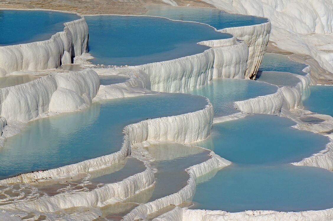 Известен своими термальными источниками и белоснежными травертинами. Памуккале предлагает уникальный природный феномен, где горячие минеральные воды образуют каскады белых отложений.
