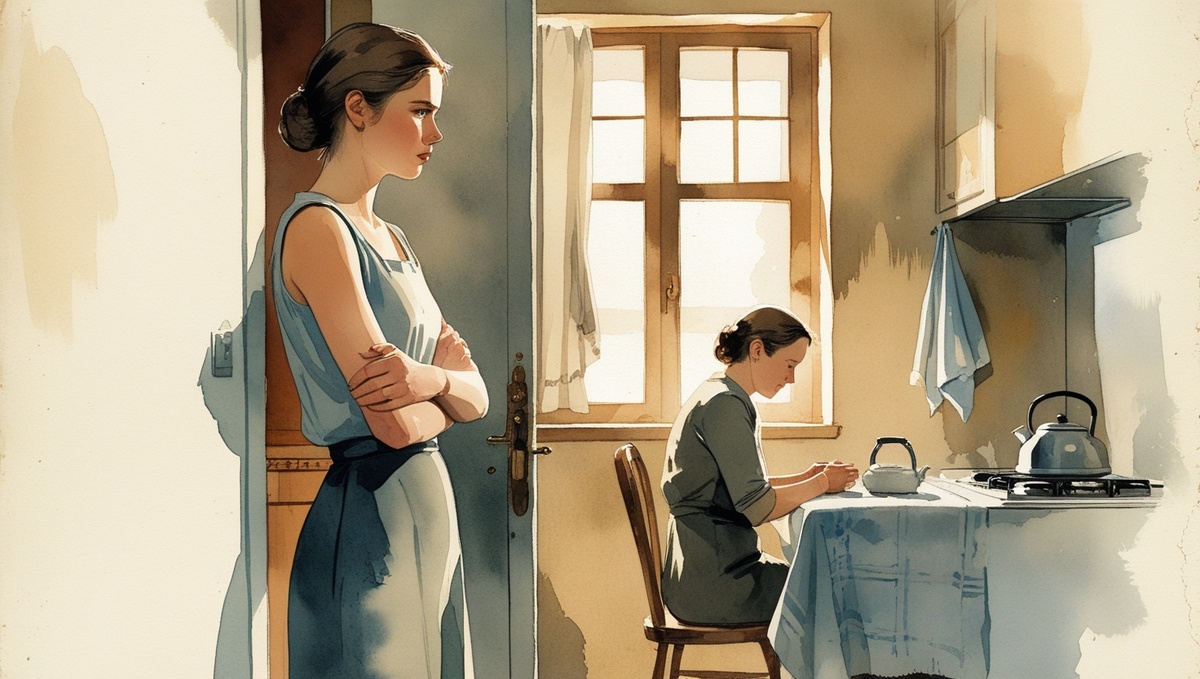 Женщина — она — сидела за столом, чашка перед ней полная, но руки дрожат. Ногти облупились, волосы собраны кое-как. Вид усталый. Как после похорон. Только вот никто не умер — по крайней мере, не физически.