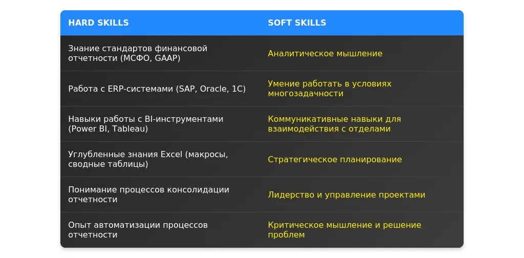 - Используйте ключевые навыки: автоматизация процессов, анализ данных, системы отчетности.