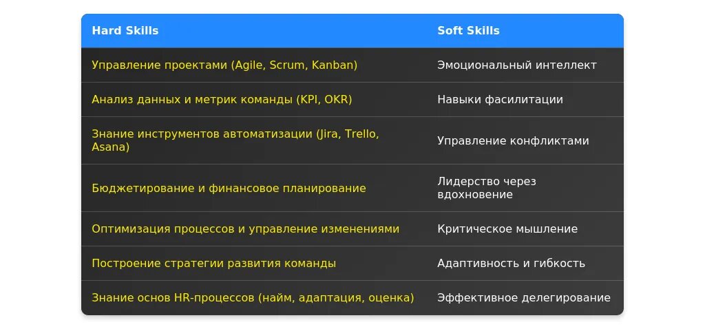 После адаптации: "Эффективные коммуникационные навыки, опыт управления кросс-функциональными командами."